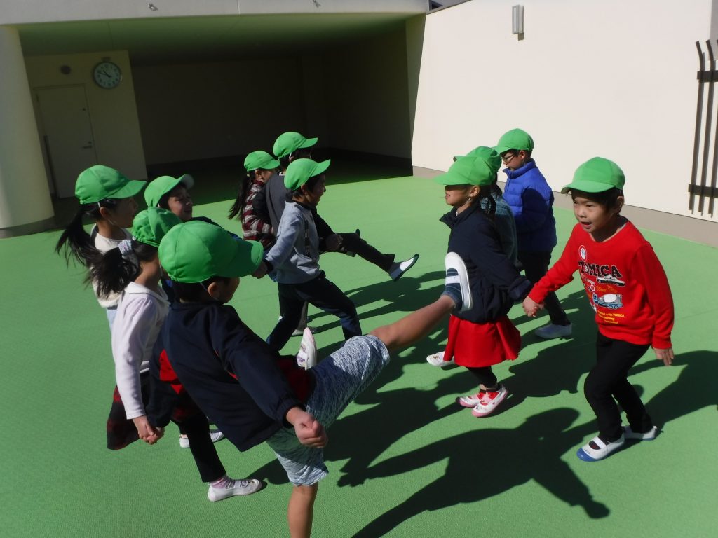 3歳児りんご組では、初めてのじゃんけん列車に挑戦しましたよ☆ 自分たちでじゃんけんをするお友だちを見つけて、どんどん繋がって長い列車になっていく様子に子どもたちは楽しそうにしていました♪ また、じゃんけんに何度も勝って先頭になったお友だちは「やったー!」と喜んでいます。 これからもたくさん集団遊びをしていきたいと思います!