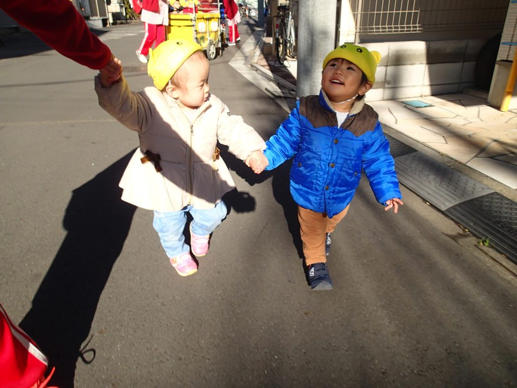 先生やお友だちと手を繋いでお散歩をするのが大好きなさくらんぼぐみさん♡
