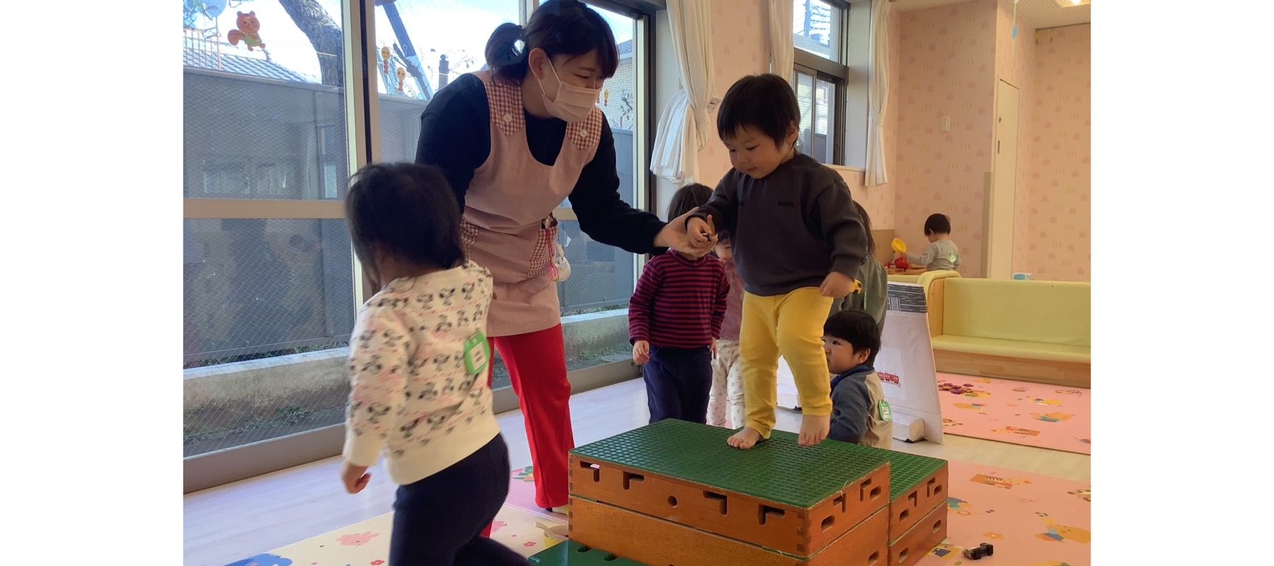 ジャンプできるように巧技台を置くと「せーのっジャーンプ!」とお部屋の中で楽しく体を動かして遊ぶこどもたち♪